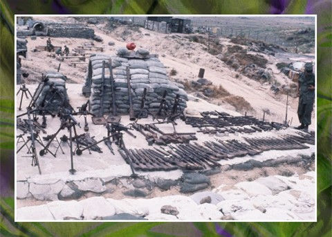 However, the cache turned out to be one of the largest found in the history of the 3d Bn, 1st Inf.  The Legionnaires moved the weapons into several open areas cleared by artillery the previous day.  When the tabulations were completed the cache was found to consist of 3/50 caliber machine guns with tripods, 3 complete 60 mm mortars and 2 additional base plates, 3/57 mm recoilless rifles, 6 M-1 Garand rifles, 11 BAR's, 6/30 caliber machine guns, 25 Thompson submachine guns, 21 M-1 carbines, 21 SKS rifles, one RPG2 launcher, 11/7.5 mm light machine guns and 6 tripods, 10/7.62 mm Soviet sniper rifles, 6/7.5 mm French rifles, 3/7.62 mm soviet carbines, 7 French 9 mm submachine gunes, 5 grease guns, 4 NVA K-50's, 2 Swedish K 9 mm rifles, a bipod for an 81 mm mortar and assorted spare parts and magazines.